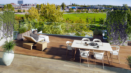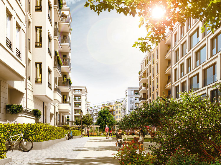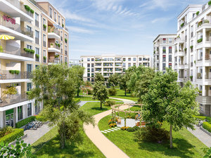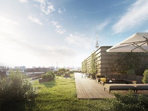 Im Herzen Berlins. Hier, unmittelbar am Park, die Sicht auf Natur, Stadt und Horizont. Mit 92 lichtdurchfluteten Eigentumswohnungen von zwei bis fünf Zimmern, acht dreigeschossigen Stadthäusern und zwei geräumigen Gewerbeeinheiten bieten Raumkonzepte für jede Lebensformen.