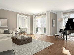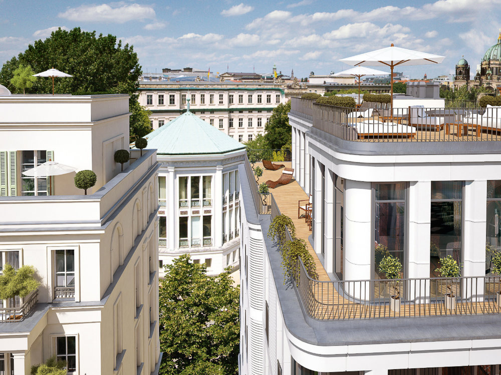 Klassisch-traditionell aufgebaut mit Sockelzone und fein strukturierter Pilasterordnung, dann wieder von klaren, modernen Formen bestimmt, die durch abgerundete Balkone an den Gebäudeecken eine weiche Eleganz erhalten.Traumhafte Ausblicke auf den Berliner Dom oder den Gendarmenmarkt, alle Wohnungen mit Balkonen und Terrassen sowie ein spezielles Sicherheitsparksystem in der Tiefgarage.