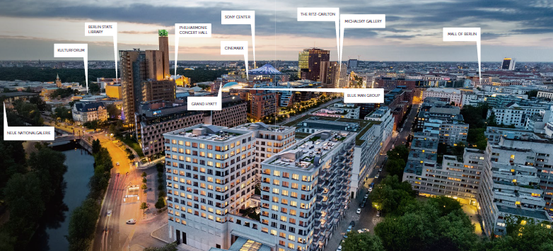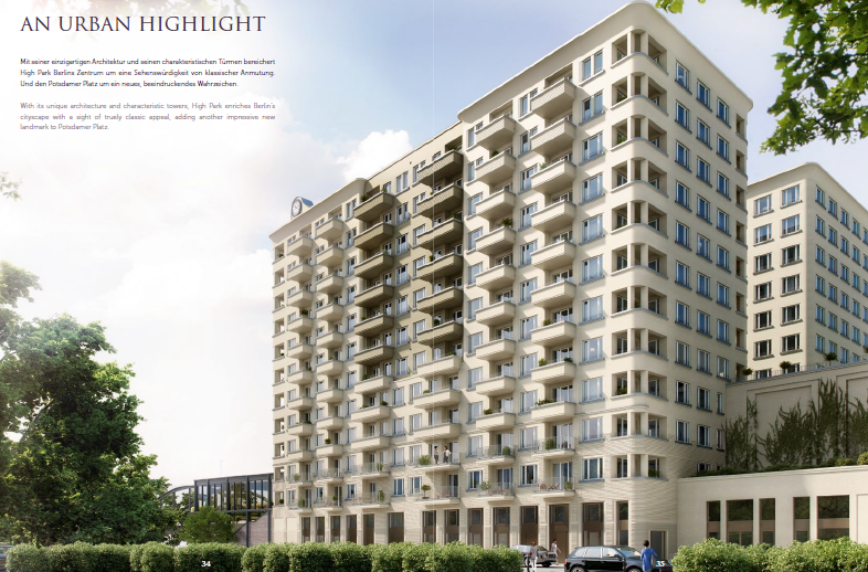 Potzdamer Platz in Berlin...Ein Gebâude das Masstabe setzt. İn den Eigentumswohnungen vereinen sich moderner Wohnkomfort und höchste Âsthetik. Mit herrausragender Architektur, ausgesuchten Details und exquisiten Service, ist das Leben im High Park