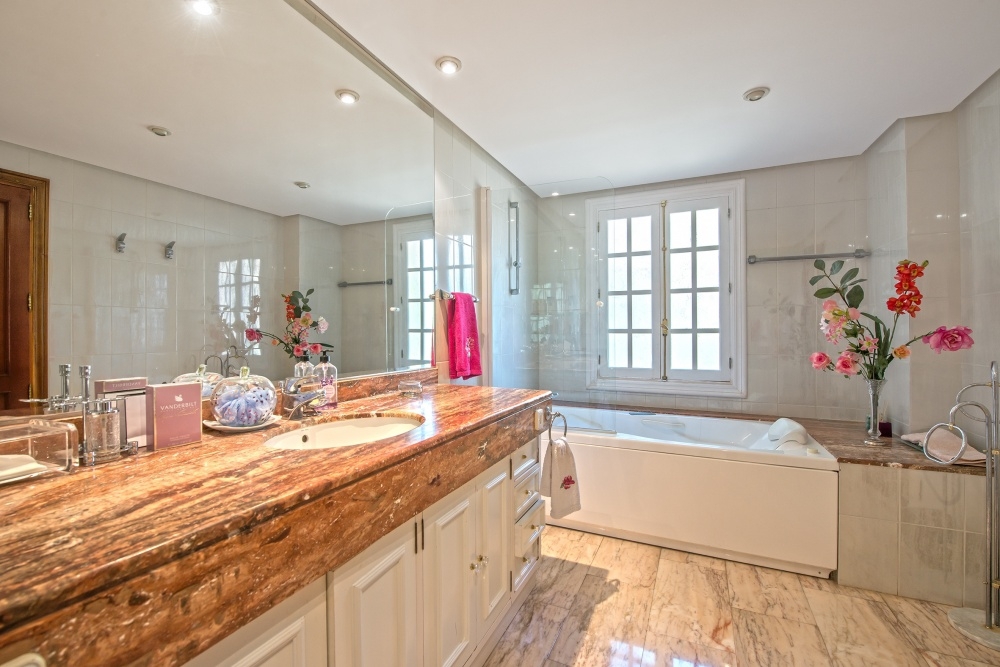 Die ca. 468 m² große Wohnfläche ist aufgeteilt in: auf der Hauptebene großzügiger Wohnbereich (ca. 70 m²), Esszimmer, separate Küche, Büro oder TV-Zimmer, Master-Suite (Schlafzimmer, Bad en-suite, Ankleideraum), 1 weiteres Schlafzimmer mit Bad en Suite, 1 Gäste-WC; auf der unteren Ebene 1 großer Aufenthaltsraum (ca. 90 m²) mit Zugang zur Pool-Terrasse, 3 Schlafzimmer, 3 Bäder (alle en Suite), 1 weiterer Raum zur freien Verwendung...