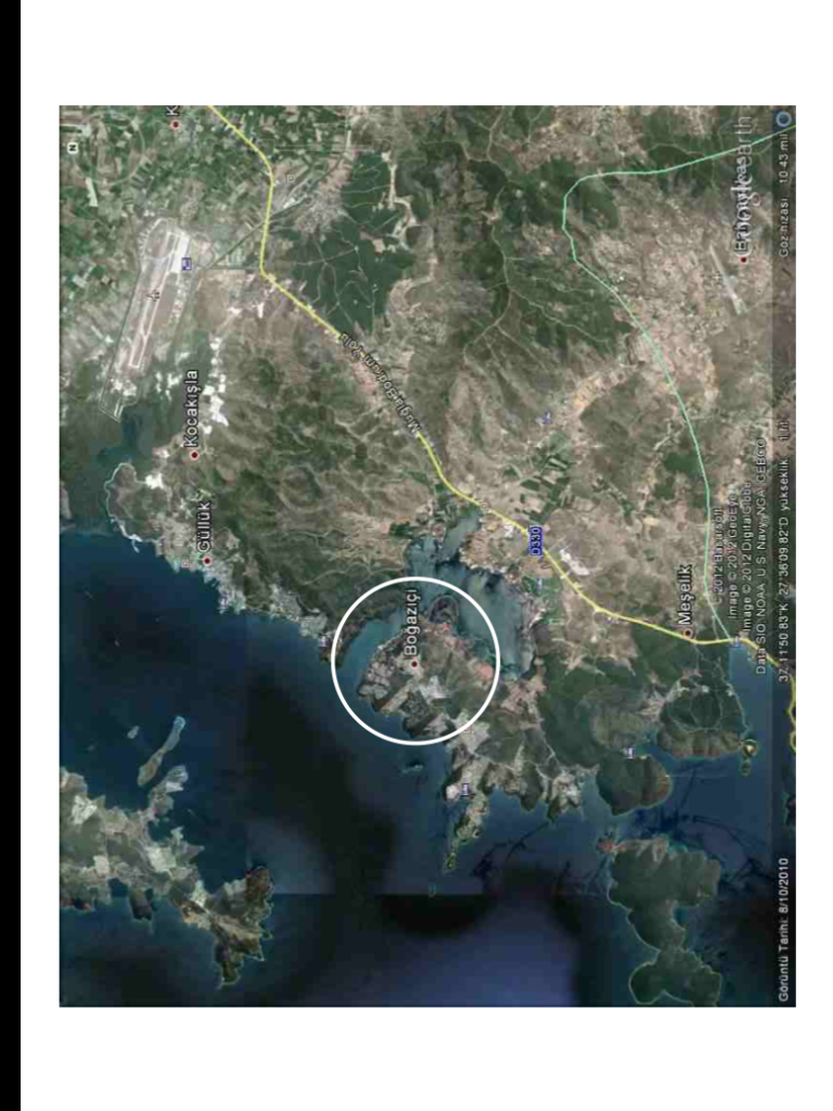 Das Grundstück befindet sich zwischen BODRUM zentrum und Yalıkavak in erster Meereslinie unmittelbar an der schönen sonnigen Südwest-Küste der Âgaischen Küste. Zu den Seiten begrenzen natürliche Täler,  das inmitten wie auf einem Hügel thronende Terrain. Das repräsentative Grundstück bietet daher zu allen Seiten beeindruckende Ausblicke auf das Meer, in die bergige Landschaft, entlang der Küste von Bodrum. Diese paradiesische und großzügige Lage, kombiniert mit der Nähe zu dem exklusiven Hotels , den Stränden um Bodrum, dem Yachthafen von Yalıkavak und dem Touristenzentrum , es gibt nur dieses eine Mal auf Bodrum. Nach Norden ist die berühmte Steilküste mit der schlucht zu Aquqriumbucht auch nur wenige Kilometer entfernt wird die schon jetzt so hervorragende Qualität des Standortes noch weiter anheben.