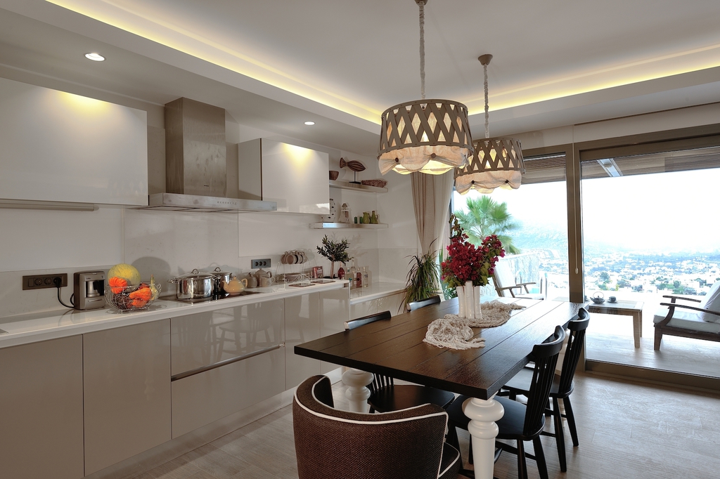 Die Wohnung wurde mit hochwertigen Materialien fertiggestellt Große Aluminiumfenster-Systeme mit schmale Rahmen bieten vom Wohnbereich aus einen fantastischem und unverbaubaren Meerblick, der zum Träumen verleitet. Durch die elegante Wohnung kann man auf die Terasse mit Pool erreichen. Man genießt man viel Komfort mit "Meerblick pur".