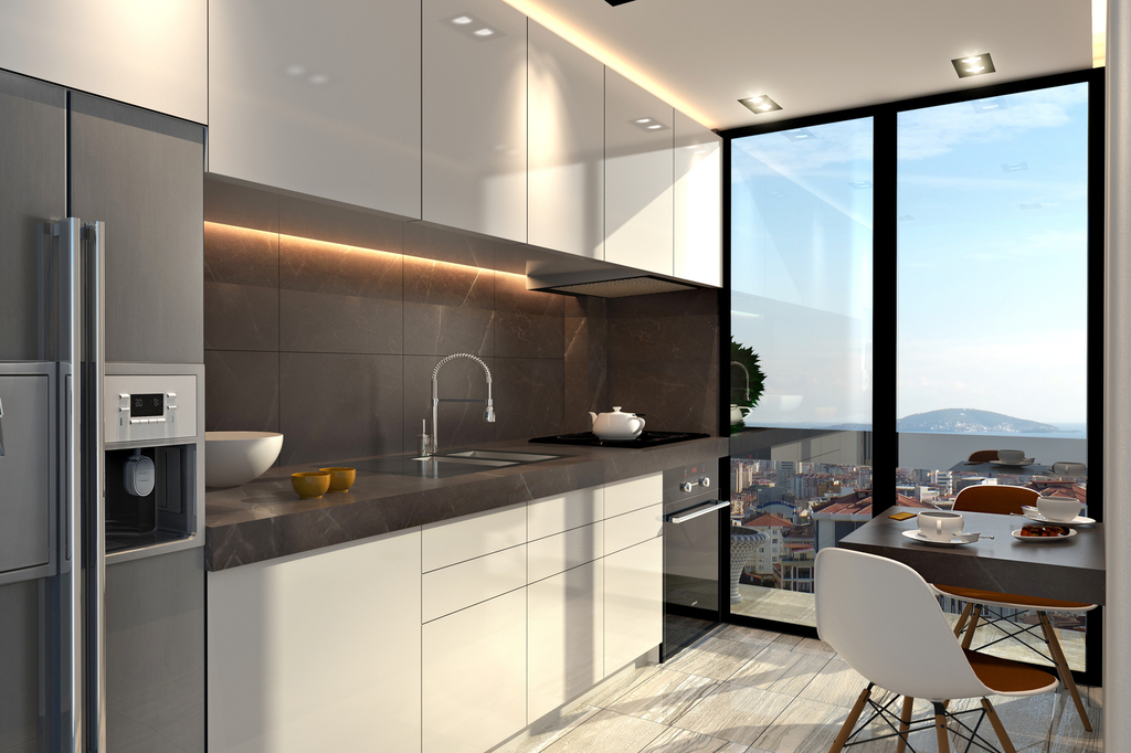 Luxuriöses Penthouse im A++ Projekt Die miteinander verknüpften, individuell designten Entertainment Bereiche haben durch massive verglaste Wände und Schiebefenstern einen spektakulären 360-Grad-blick auf Stadt und Meer auf der Asiatischen Seite . Weitere Ausstattungsmerkmale sind individuell ausgewählt und von höchster Qualität.Verteilt von 2+1 bis 4+1 findet man eine Eingangshalle, ein Wohnzimmer, en-suite Schlafzimmer, Badezimmer und eine Gourmet - Küche. Projektbeschreibung ...24 std Concierge , Cleaning und housekeeping services , security services ,Spa , in und Outdoor pool Preis ... 1.300.000 EURO